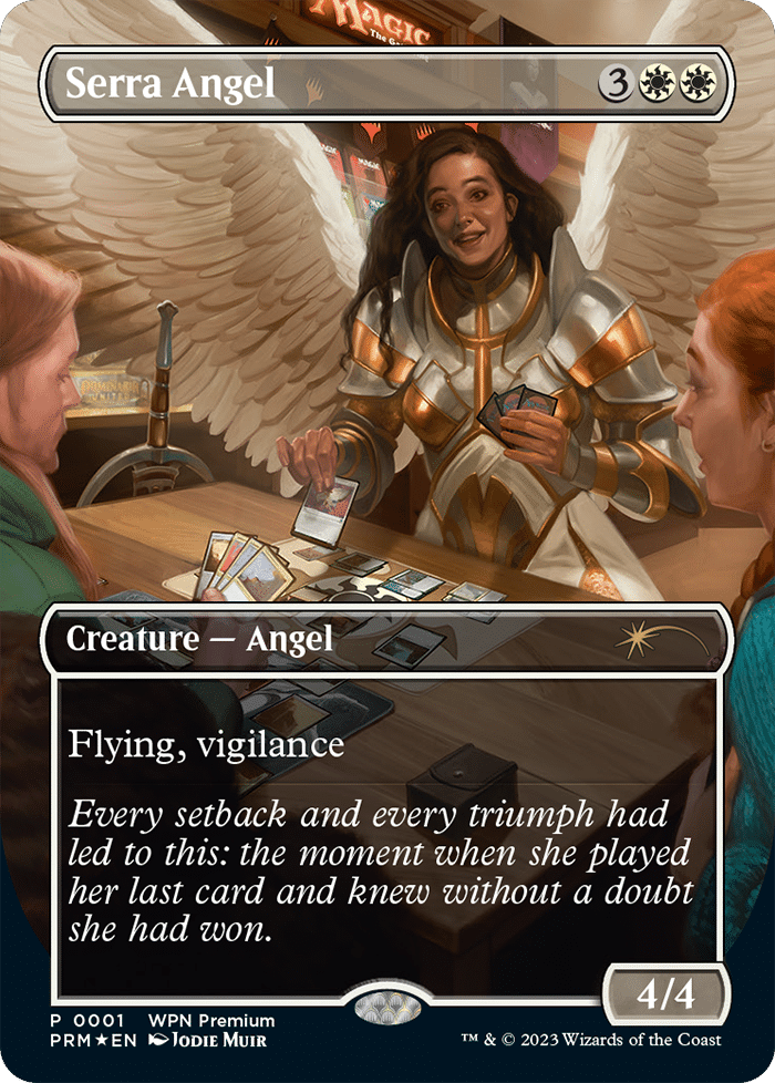The first promo given to stores for Q4 of 2023 is Serra Angel. Serra Angel, while iconic, is a relatively cheap card that has been reprinted many times before. The card is worth under 10 cents in its cheapest traditional form according to TCGplayer market price. Of course, alternate art promos can often be worth much more than their traditional counterparts, especially if they are in low supply. Perhaps because these promos are restricted to WPN Premium stores they will be worth more than expected, but the reprint value of Serra Angel is still quite small.