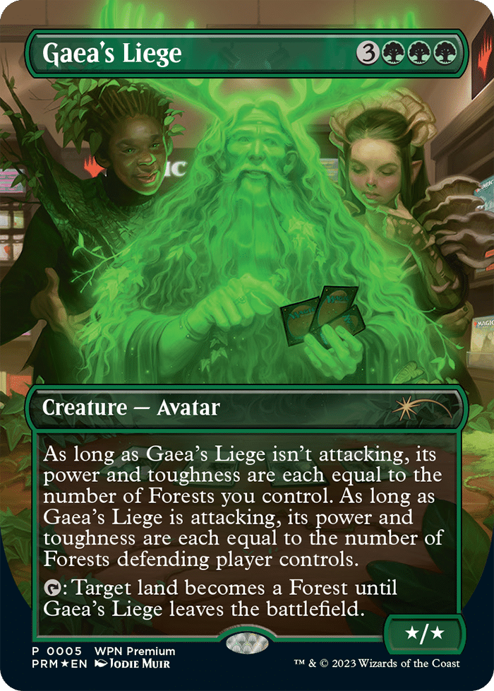 Finally, the Q4 promo is Gaea’s Liege, which has a price tag of about 25 cents in its cheapest form. It’s strange to see that the black, red, and blue promos are all typal payoffs with reasonable price tags, while the white and green promos are quite cheap and don’t fit the theme. In addition, Gaea’s Liege is the only quarterly promo without flavor text, which is a strange choice overall. Sure, Gaea’s Liege has a rather large textbox, making it difficult to fit flavor text, but that further makes the decision to use Gaea’s Liege as the promo of choice a questionable one.