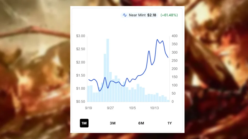 The extended art variant follows a similar pattern. Despite the fact that multiple copies sold for $5 yesterday, the market price rests at $3.15. This is still up from $1.98 earlier in the month, but the gap is not as substantial. The lowest current sales listing is at $2.56 before shipping fees, and multiple copies were purchased today for just under $2.