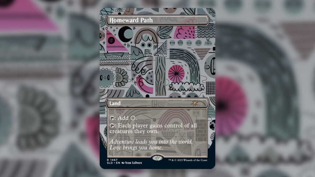 Homeward Path from the Gift Wrapped Secret Lair had a much steeper secondary market price before it saw a reprint in Lord of the Rings: Tales of Middle-earth. Before its recent reprint, Homeward Path was only printed in supplemental Commander sets, and that’s where it primarily sees play.
