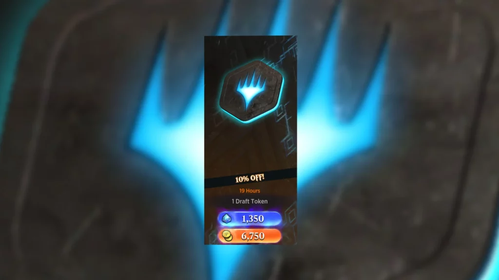 Occasionally, MTG Arena Draft Tokens will appear on sale in the shop’s ‘daily deals’ section of the in-game shop. Generally, entering a premier draft costs 10,000 coins or 1500 gems. Instead, this token represents a draft for 6,750 coins or 1350 gems.
