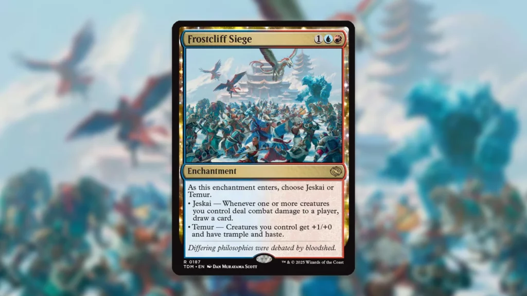 Frostcliff Siege is rather mediocre. The effect isn’t bad for three mana and should allow midrange decks to keep up in slower matchups. Jeskai provides steady card draw, and Temur punishes strategies that try to stabilize with board wipes.