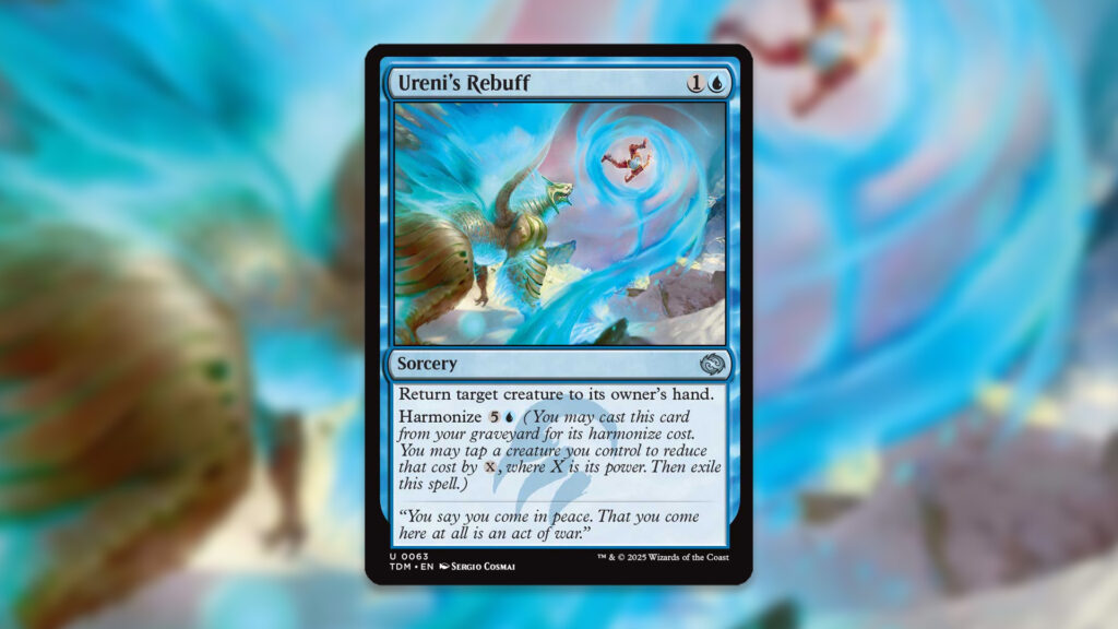 Ureni’s Rebuff demonstrates the Temur Harmonize mechanic. This card essentially functions as a sorcery speed Unsummon that can be Flashed back. Tapping a massive creature to cast this can occasionally be worthwhile, but Sorcery speed makes it a hard sell. this isn’t the most impressive card in the world, but could be a good tempo option in Tarkir: Dragonstorm draft.