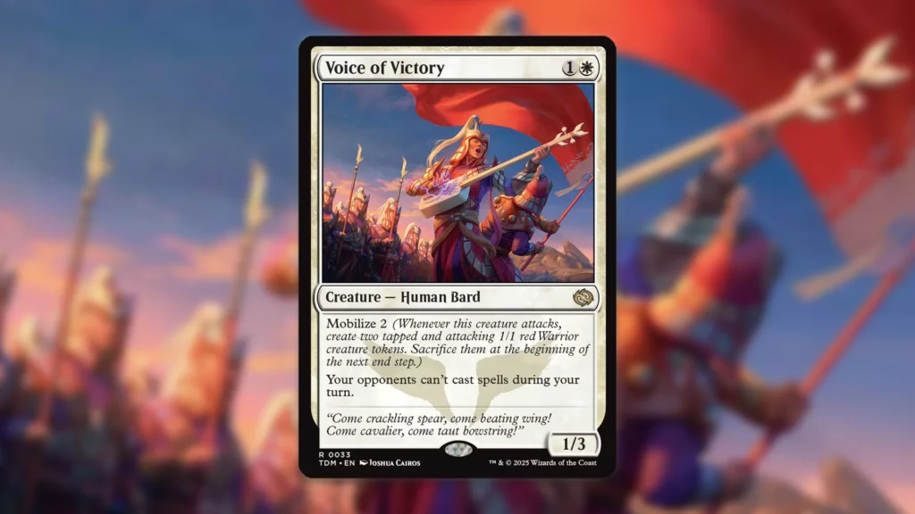 Grand Abolisher already sees play in Standard, but Voice of Victory may replace it in a lot of decks. The card is easier to cast and offers stronger combat implications. The Silence effect is also incredibly sought after in cEDH, which means that this is yet another card that may see demand from both constructed and Commander players.