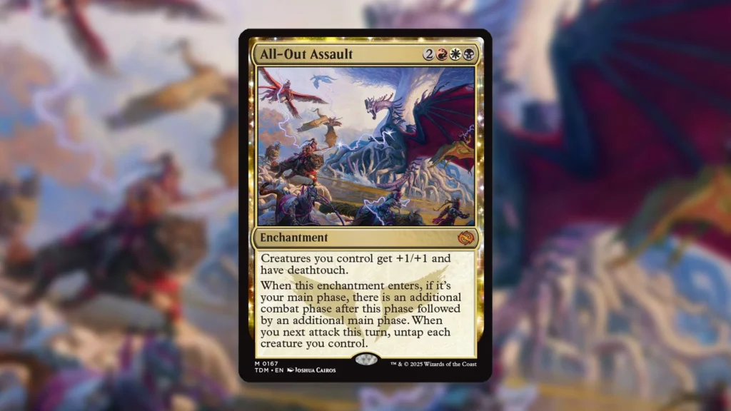 Gaining an extra combat step is rather flashy, but for five mana, there are a lot of other MTG cards that can do more on their own. Unless you have a massive board on the turn that All-Out Assault drops, all you have is an overpriced anthem.