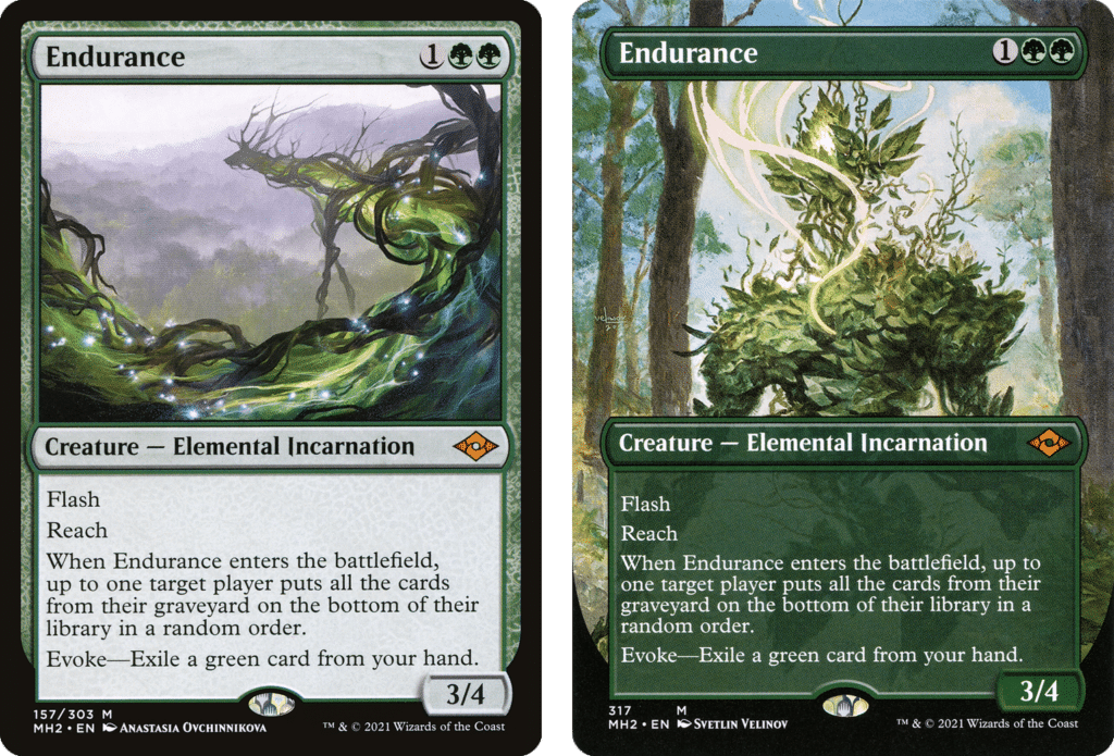 Carrying on with the Evoke cycle, Endurance became underlooked during Modern Horizons 2 due to the hype of Grief and Solitude. However, the Elemental Incarnation is seeing play in Modern and Legacy since it’s fantastic against graveyard strategies such as Dredge.