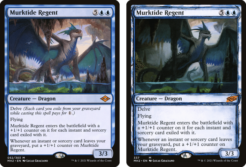 For Modern, the Dragon sees play in Izzet spell-based lists. Since the release of Modern Horizons 2, Murktide Regent plays an important role in Izzet, to the point where the strategy is often named Izzet Murktide.