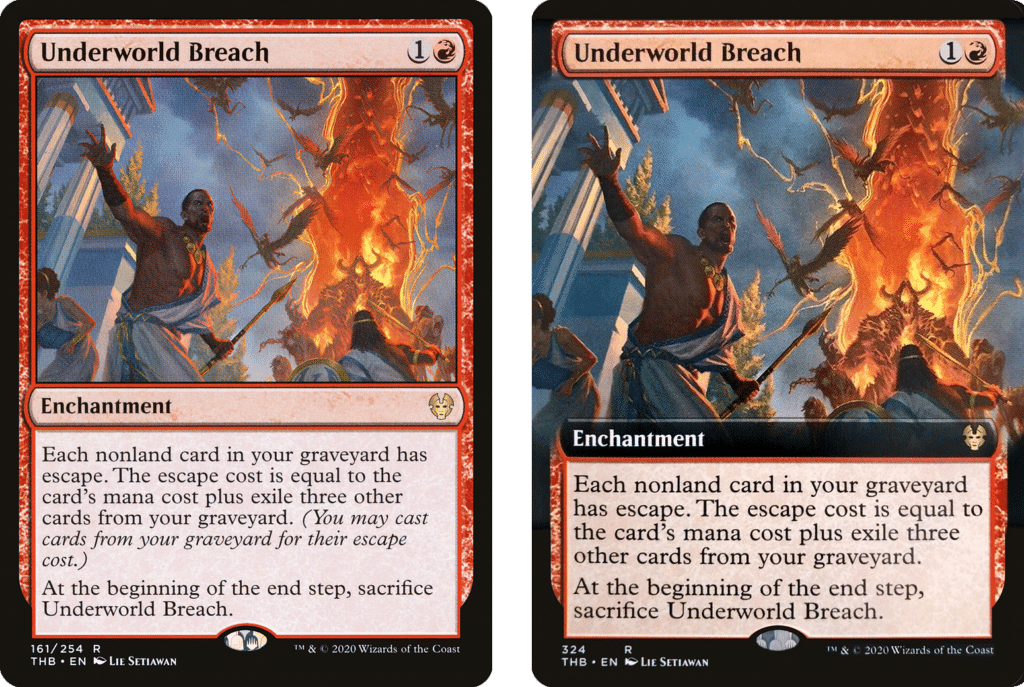 You see the Red enchantment in Commander with a similar approach in mind, as you’re looking to do something inherently busted and unfair when resolving the card. Sometimes it crops up in Modern in Grinding Station or Egg-style strategies as the cards are aggressively costed, you can recast them with Underworld Breach in play. It’s unlikely to see in Pioneer ever again, but all it takes is one card to break Underworld Breach again in Modern or Commander. With the number of cards coming into MTG, it may be sooner than you think.