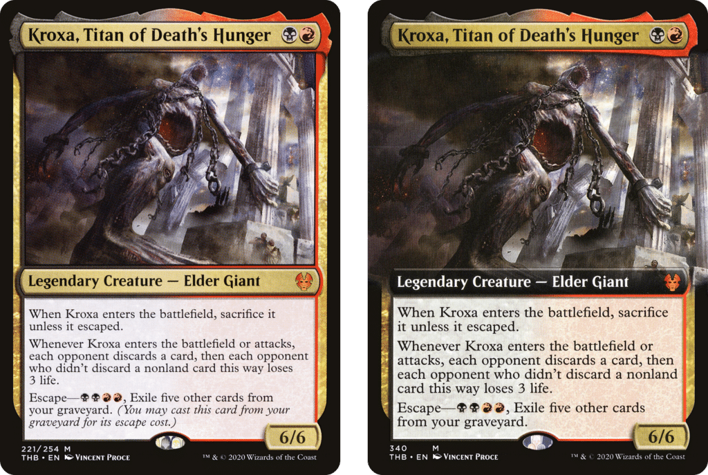 Lastly, the most expensive card in the set is the other Elder Giant, Kroxa, Titan of Death’s Hunger. During previews, the card didn’t garner much attention thanks to Uro, Titan of Nature’s Wrath. But since the Simic Legendary was essentially banned in every format, the Rakdos-colored Legendary started to see play in Modern and Pioneer.