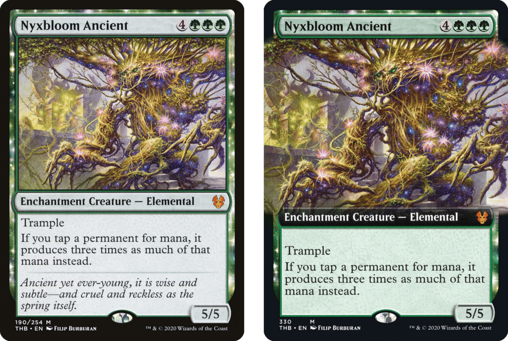 Perhaps one of the forced Commander cards from the set, Nyxbloom Ancient is a powerhouse in Commander. The Elemental offers triple the mana production in your lands, mana creatures, and mana rocks which is absurd for the singleton format.