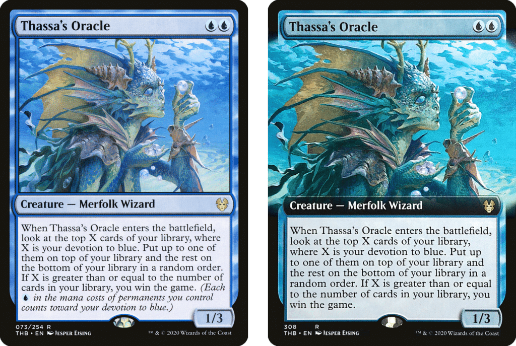 While discussing broken combo potential, Thassa’s Oracle offers a similar play pattern. Thanks to Theros Beyond Death, the Merfolk Wizard re-shaped Pioneer alongside Inverter of Truth offering a strong combo-control strategy. Typically you see Labatory Maniac as a win-condition in Commander or Modern but requires effort for the card to pay off. However, with Thassa’s Oracle, it requires less effort since your devotion to Blue will be higher, therefore more cards to dig through allowing you to win the game.