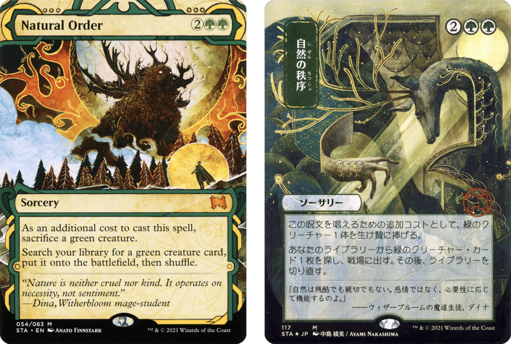 You see the Sorcery in Commander in Green-based lists to achieve a similar effect, you trade away your mana dork for a value creature, or for a game-ending threat. Either way, Natural Order is amazing in Green-based creature lists, and you often see the same habits occur in Legacy and Vintage Cube to great effect.