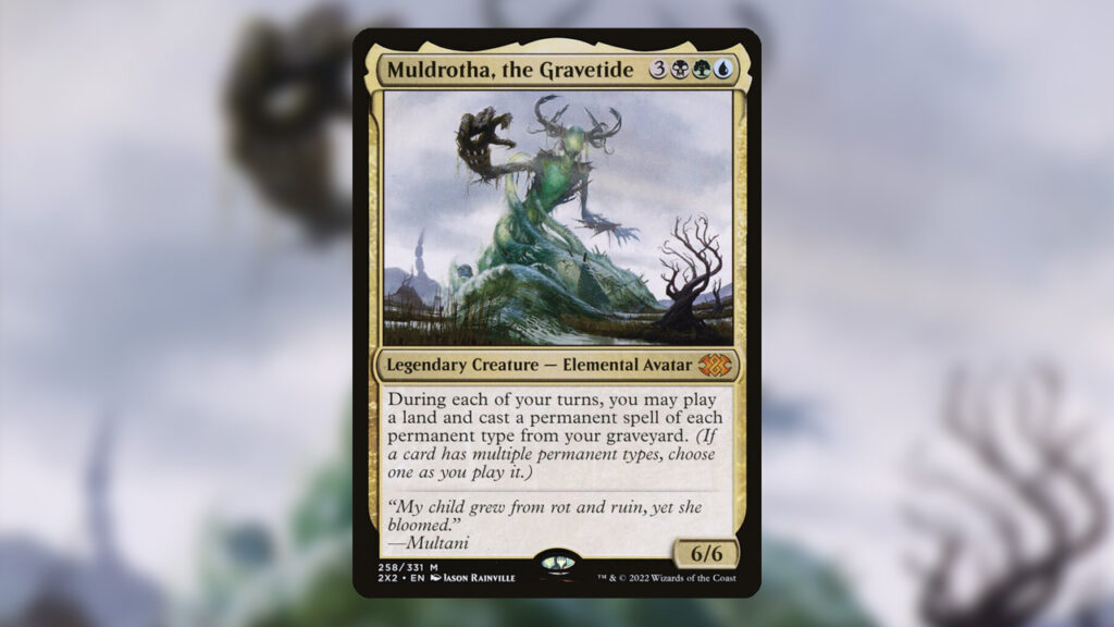 Creating value with Muldrotha, the Gravetide is extremely easy. Even outside of graveyard strategies, cards get removed from play all the time in Commander. Recasting threats, Fetch Lands, and sacrificial cantrips like Mishra’s Bauble for repeatable value is something that almost any Commander deck can employ. Unless your gimmick is focusing on instants and sorceries, any Commander deck will be happy to have Muldrotha, the Gravetide as part of it.