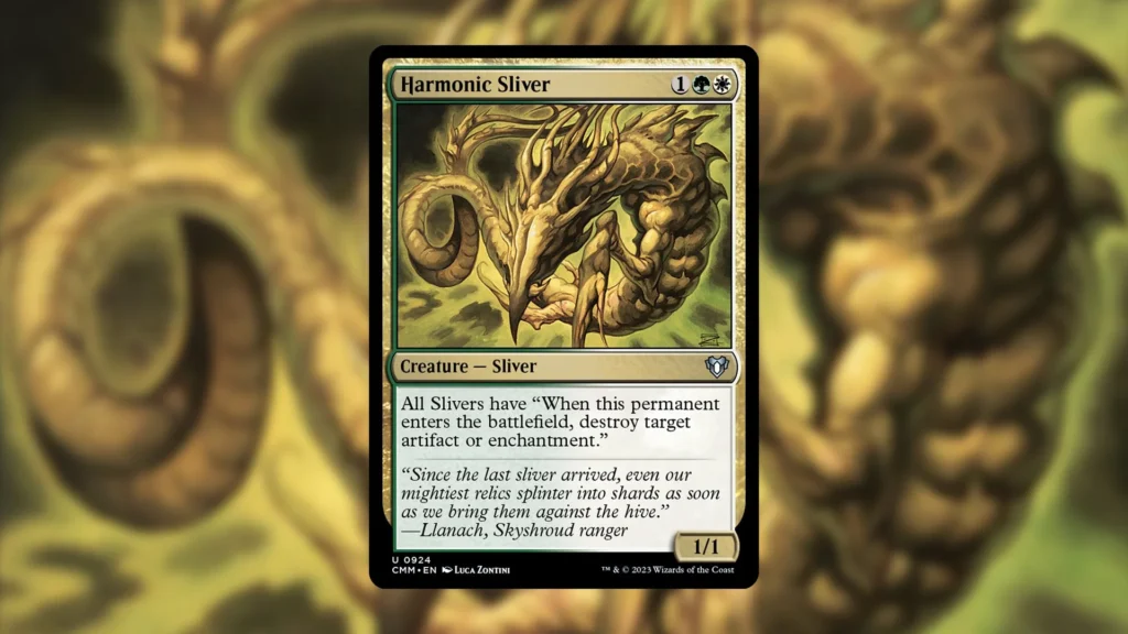 Harmonic Sliver is a Game Changer attached to a body. This card basically functions as a typal Aura Shards for Slivers. Game Changers are considered the most powerful cards in Commander, so having a typal payoff lookalike basically solidifies it as a must-include in any Sliver deck.