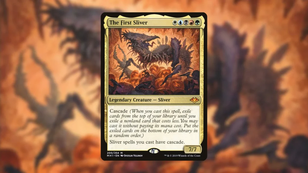 This is not only the best Sliver Commander, but the best Sliver in all of Magic: The Gathering. Granting Slivers Cascade creates lethal boards out of nowhere, and can do so extremely quickly. You can easily end games on the turn you resolve The First Sliver with a little setup.