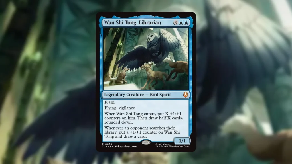 Wan Shi Tong, Librarian is not only our pick for the best card in the set, but it is also the most expensive one right out of the gates. It’s efficient, scales well over the course of the game, and punishes any opponent for utilizing Fetchlands which comes up a ton in Modern and Eternal formats. In high-powered Commander environments, it has the potential to generate a ton of value as players continue to utilize tutors of their own.