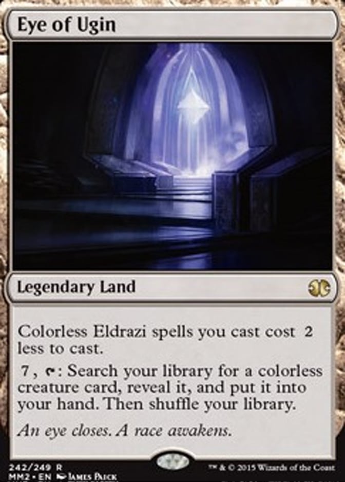 Uniquely, Eye of Ugin is one of the few tutors, such as Inventors’ Fair, that is a land. This offers it protection against removal; however, the cost of 7 mana to tutor a colorless Creature is far from ideal. You’ll usually be better off playing Eye of Ugin to reduce the cost of Eldrazi spells.