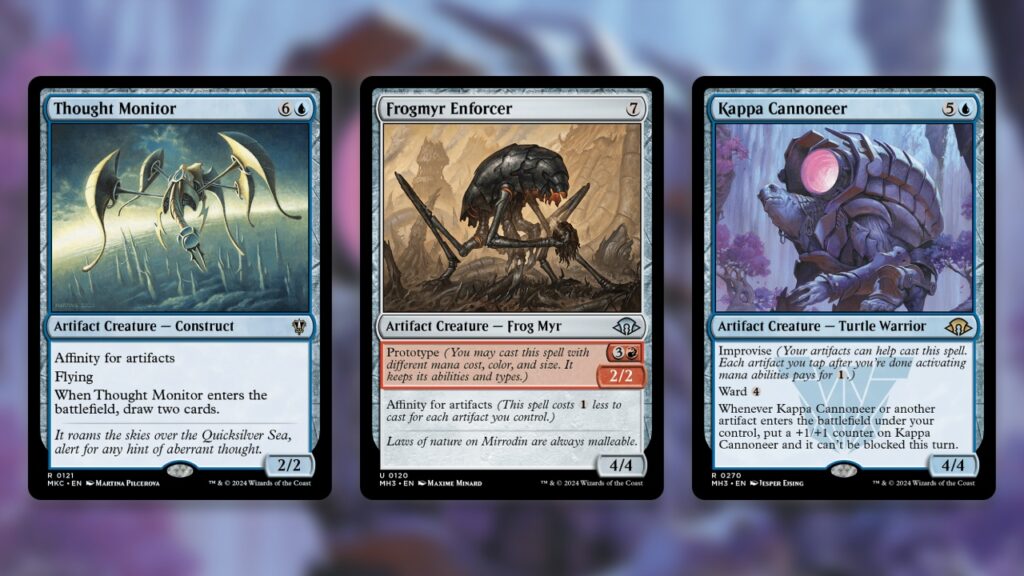 When considering potential homes for this new card, the first place my mind went was Affinity. This is a powerful deck across multiple formats, including Modern and Legacy. It focuses on the titular Affinity mechanic, and stacking up cheap artifacts in play to discount the high mana costs of cards like Thought Monitor and Myr Enforcer.