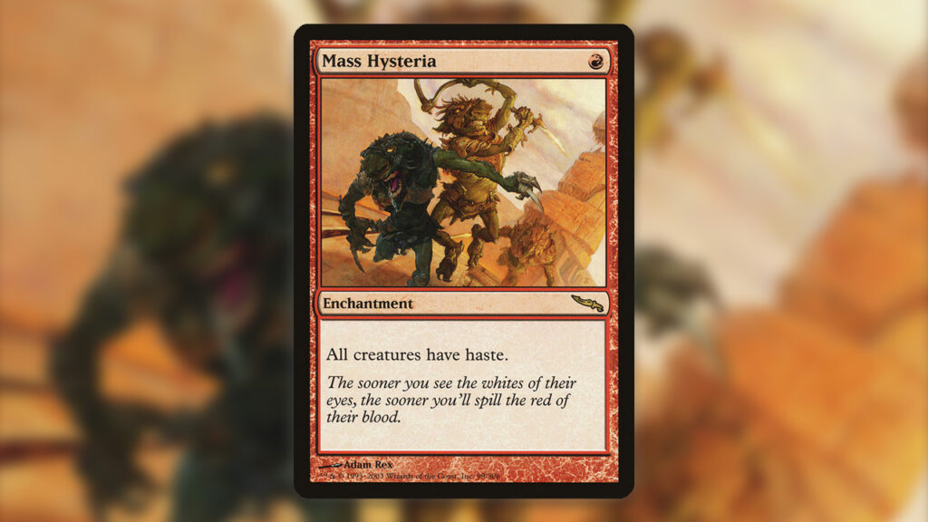 This is definitely a card suited to Commander play first and foremost. Mass Hysteria can help turn a huge board of tokens into something that can take out opponents immediately. With instant speed Goad effects, you can wreck havoc with opposing Hasty creatures as well!