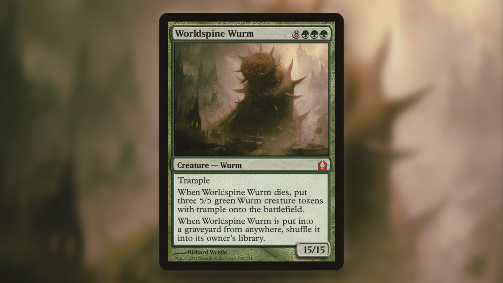 Worldspine Wurm is one of the biggest creatures in all of Magic. A 15/15 is certainly nothing to scoff at, and the Wurm’s ability to split into three more 5/5 creatures after death is too much for many decks to deal with. Fortunately, Worldspine Wurm has a massive mana cost, making it difficult to deploy in most circumstances.