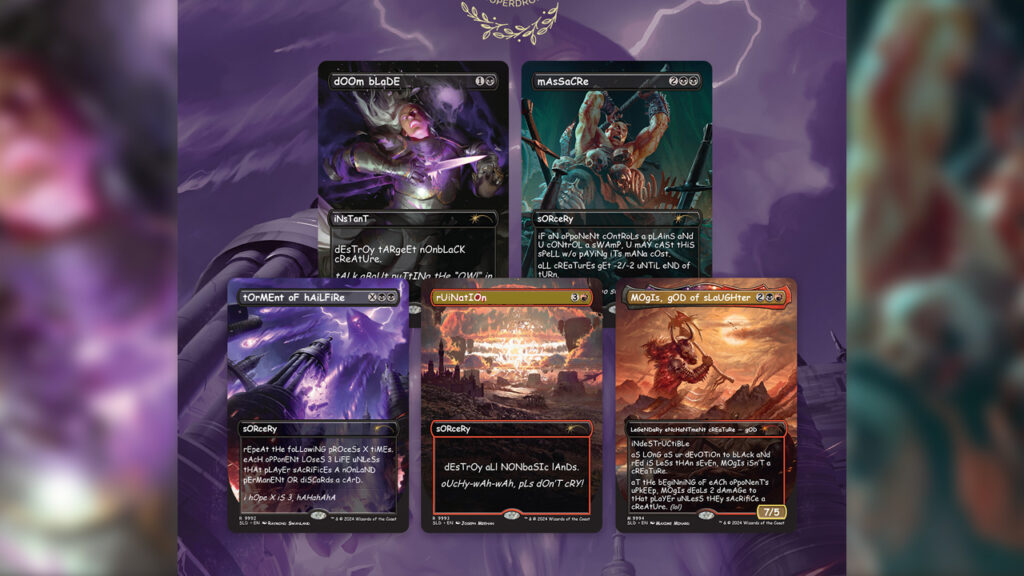 From a financial perspective, though, this Secret Lair is quite lucrative. Non-foil copies of Torment, Mogis, and Ruination add up to over $30, which is decent already. When factoring in foil versions (foil Secret Lairs usually go for $10 more than their non-foil counterparts) of these cards, things get even juicier. Massacre foils are worth about $23, which is a massive jump from Massacre’s non-foil price. Mogis also leaps to about $19, and Ruination has yet to receive a foil printing period.