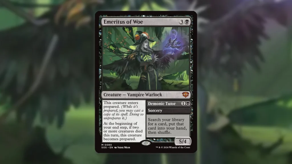 As a four-mana creature with no elite immediate impact on the board, Emeritus of Woe may struggle to find a home outside of Commander. In the context of EDH, however, this card seems strong. Even getting to cast Demonic Tutor once can help you set up a wealth of combos, but Emeritus of Woe’s reprepare condition isn’t tough to meet.