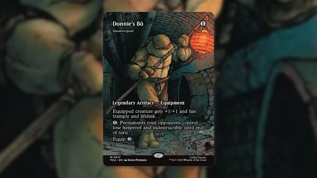 Out of all the most expensive MTG TMNT bonus sheet cards, Shadowspear is easily the most widely played. Appearing in over 274,000 Commander decks, this card is a true staple thanks to its effective buff and devastating ability. At worst, giving a creature Trample and Lifelink can create a serious threat, especially when combined with an Urza’s Saga.