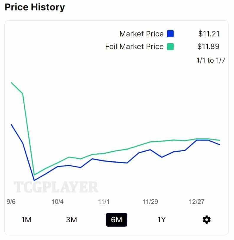 Crafter’s price started trending up a week after Spirit Squadron‘s release, and this week, Crafter saw a substantial spike in price. Now, the card is about $12.00.