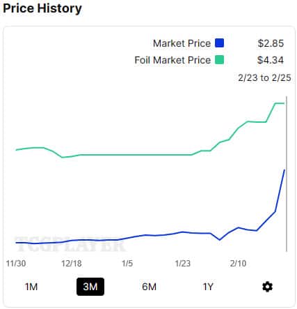 Here’s yet another card that went up in price as a direct response to a new Commander from Kamigawa: Neon Dynasty. Retether jumped from $7.00 to $14.00 based on the demand of Light-Paws, Emperor’s Voice Commander players.