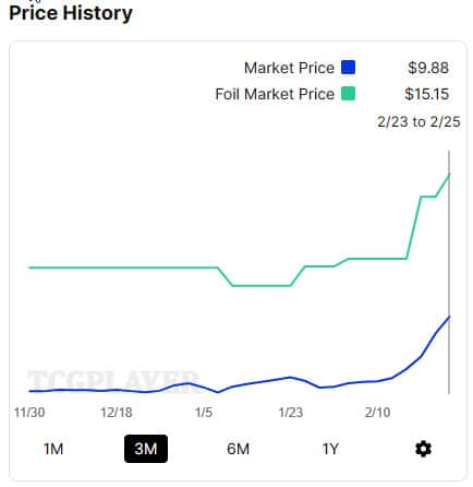 Hallowed Haunting began trending upwards in price last week, as I predicted in my newsletter, but this week it absolutely exploded in price. It shot up from $8.00 to nearly $25.00 as the card has practically sold out across all online vendors. At the time of writing, there are only 15 listings left on TCGPlayer.