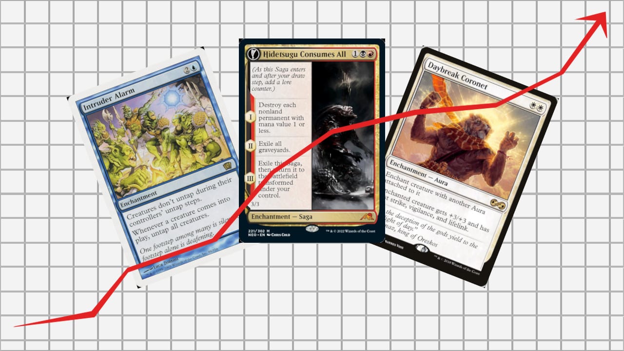 Because it is a staple in Modern Slippery Bogle decks, Daybreak Coronet has floated around $4.00-$5.00 for a long time. But this week, all copies rose to about $9.00. The new attention for the card is due to the new Aura Commander, Light-Paws, Emperor’s Voice.