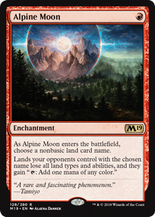 You may ask yourself, what’s so powerful about affecting one particular land, especially if your opponent can still gain mana from that land? Ever since the release of Alpine Moon, players have asked this question, and consequently, Alpine Moon sat in Bulk Bins for years.