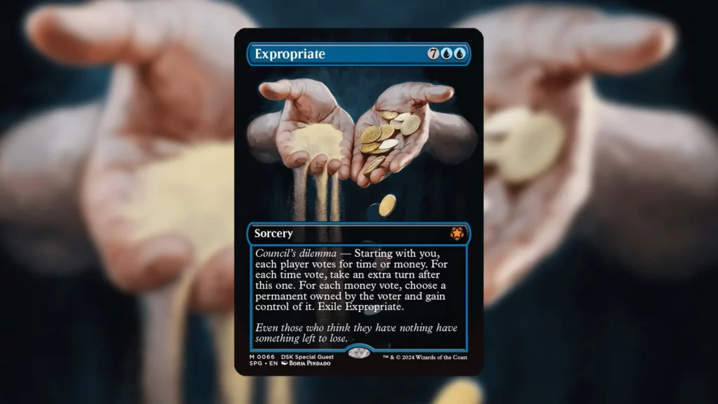 If you ask us, Expropriate falls under the ‘Chaining Extra Turns’ restriction in the second and third Bracket and the Extra Turns restriction in the first bracket. Depending on how players vote, Expropriate is capable of creating multiple extra turns upon resolution, which violates the nature of the rules. Similar to how Blood Moon and Time Stretch aren’t on the list, Expropriate probably shouldn’t be there, either.