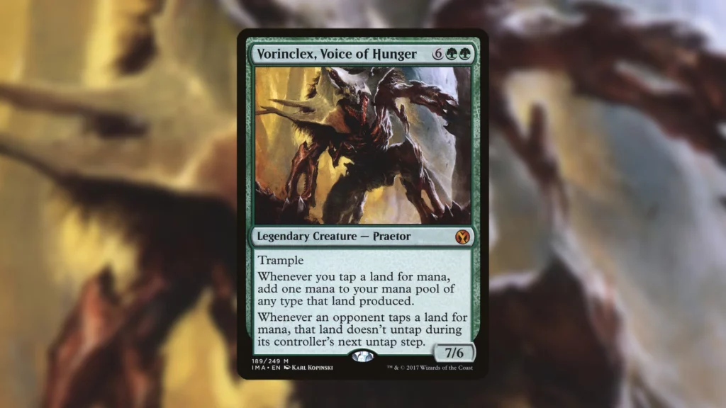 Vorinclex, Voice of Hunger occupies an awkward spot in the Game Changers List. According to the Bracket System, Game Changers should be available to decks starting in Bracket 3 and up. I would make the argument, however, that Vorinclex shouldn’t be playable in Bracket 3 because it violates one of the other restrictions.