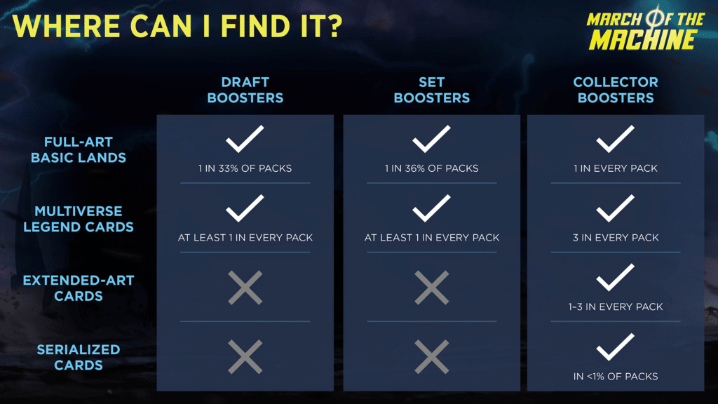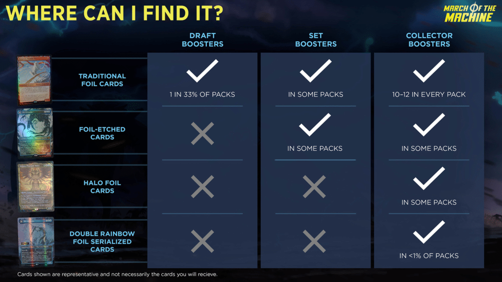 In an article titled “Collecting March of the Machine,” Wizards of the Coast released the above infographic. As sets get more and more special variants to cards, it can become quite challenging to keep track of where everything is popping up. This has been pointed out as a problem from players in the past. The infographic helps, but it’s not something players believe should be necessary.