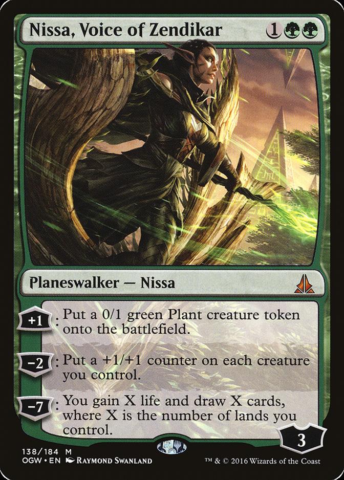 Kodama of the West Tree will put epic amounts of Forests into play. Nissa, Who Shakes the World, will double the mana those lands can produce. On top of that, she can also turn you lands into modified creatures with +1/+1 counters.