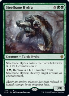 Steelbane Hydra is a good source of artifact and enchantment removal. Vastwood Hydra modifies your other creatures when it dies. And Wren’s Run Hydra can either be played as a massive creature, or used to reinforce another creature with +1/+1 counters.