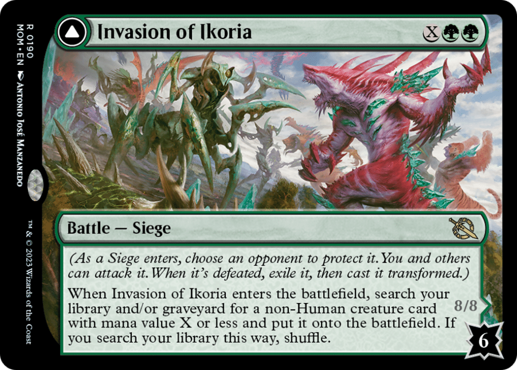 As mentioned above, tutors are really good cards. This is especially true when they bring the card they are searching for directly into play, rather than into the hand. Invasion of Ikoria allows its controller to find any non-human Creature from their deck and bring it straight into play, by adding two additional Green mana on top of the card’s regular cost. This is a great way of finding combo pieces, or just grabbing massive threats in the late game.