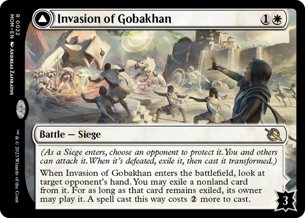 Invasion of Gobakhan is a card with a decent front face, but an amazing back face. Invasion of Gobakhan provides the exact same hand-exiling effect as Soul Partition, for the exact same cost. This effect is also present on Creatures like Elite Spellbinder and Anointed Peacekeeper. This is a decent disruption effect in formats like Standard, but isn’t amazing in Commander as it only penalizes a single opponent.