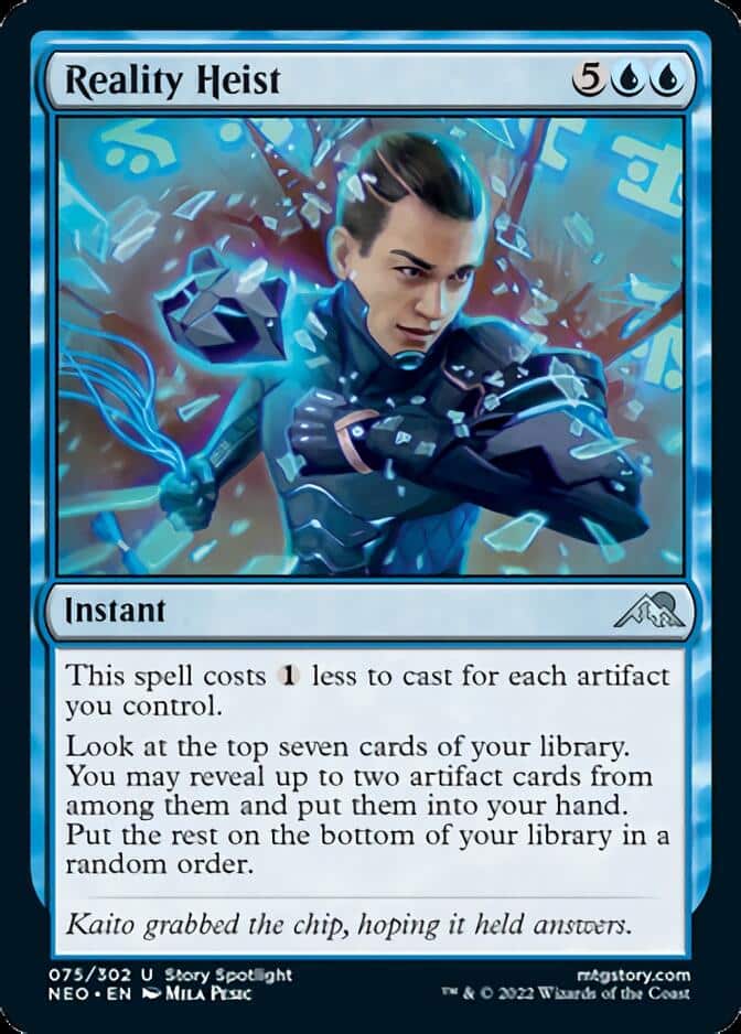 This card will be tested in Affinity decks, but I think Reality Heist will really shine in artifact combo decks like Grinding Station because it can dig for you combo pieces.