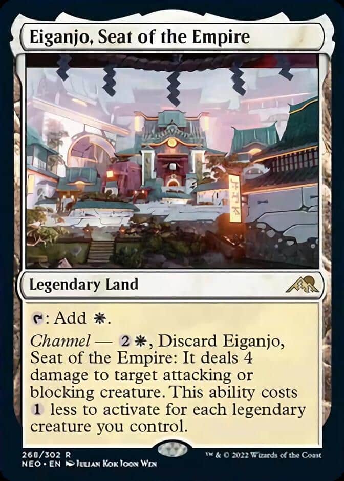As with Otawara, Eiganjo is an upgrade over a basic Plains with very little downside. In Modern, I am particularly excited about this card in Death & Taxes decks.