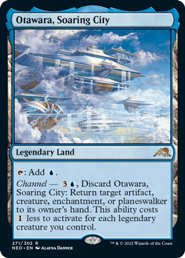 Otawara, Soaring City, has a pretty heafty channel cost. But because this land enters the battlefield untapped, the first copy you play in your deck is effectively a free upgrade over an Island.