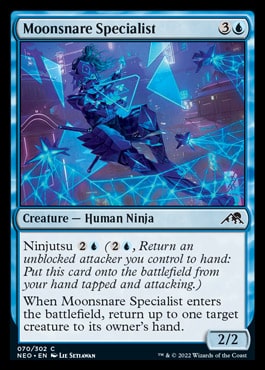 Now, both Izzet and Dimir variants of the Ninja deck have access to Moonsnare Specialist as another tempo play. For three mana, you can ninjutsu the Specialist into play and bounce creatures to your opponent’s hand.