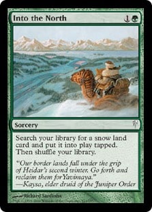 This may be one of the simpler cards on the list given that it’s a simple land search but LOOK AT THAT ARTWORK. We get chills just thinking about how cold that scenery is and when we’re looking for snow, Into The North provides seemingly endless quantities!