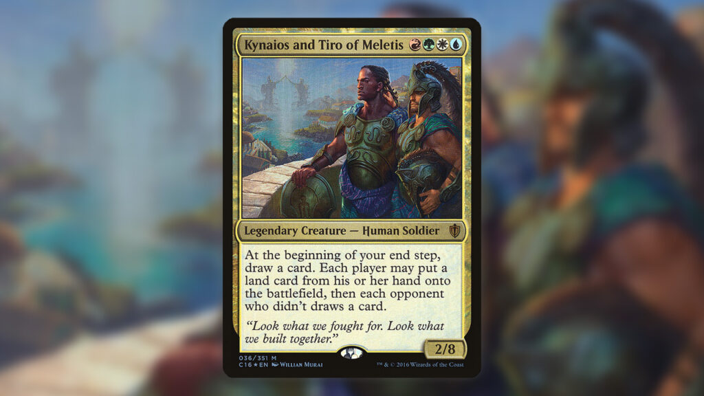 Stalwart Unity is a four-colored deck that has a bit of a group hug theme. Kynaios and Tiro of Meletis represents the strategy well, offering benefits to everyone at the table. It also happens to be the most expensive card in the deck.