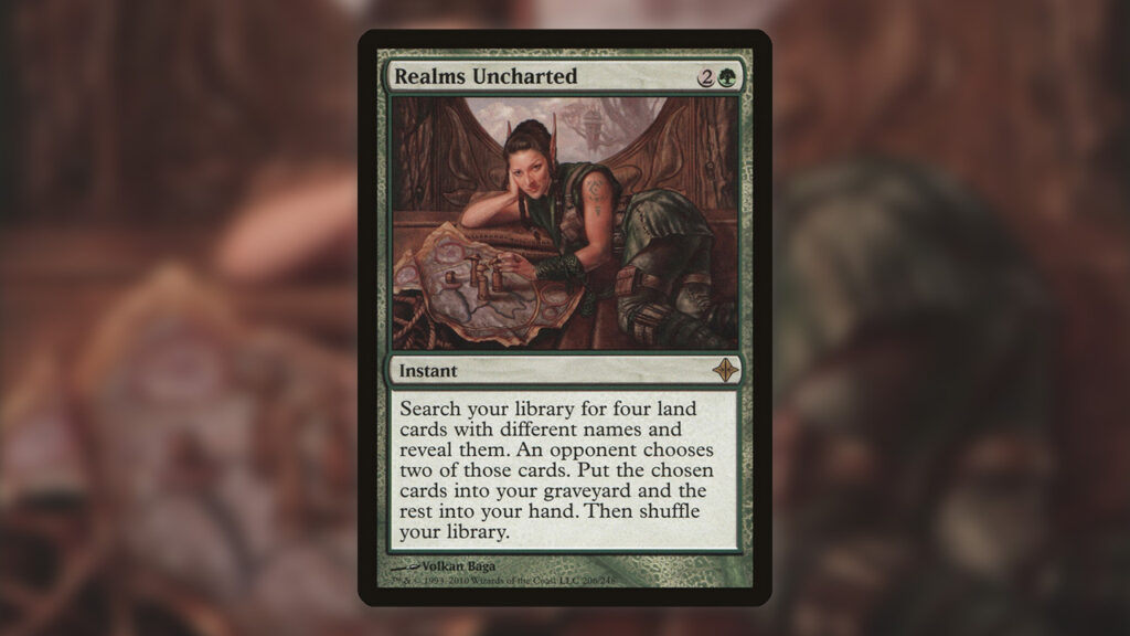 Obviously, giving your opponent the choice of what lands go to your hand isn’t ideal. Regardless, for decks that have ways to return lands from the graveyard to play, Realms Uncharted is an awesome inclusion.