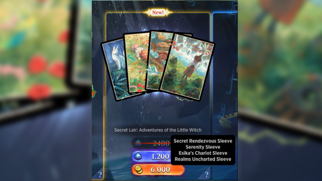As it turns out, though, there’s actually a handful of sleeves currently available in the MTG Arena store with artwork that doesn’t appear on any paper card! Furthermore, these sleeves are specifically for the “Secret Lair: Adventures of the Little Witch,” which also doesn’t exist at the moment.
