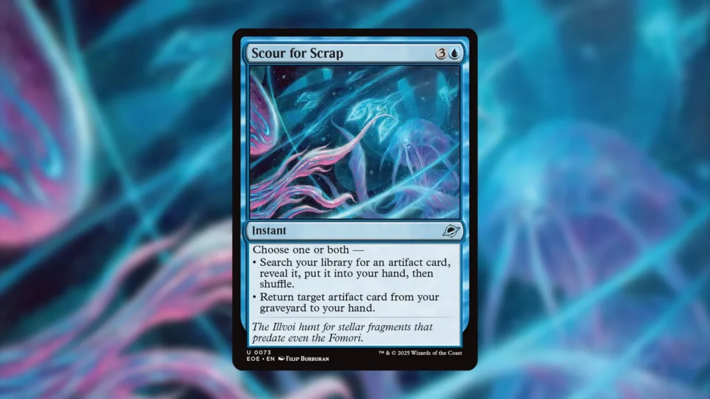 Depending on how slow Standard is after rotation, Scour for Scrap could see play in decks that use Simulacrum Synthesizer as their primary win condition. Having the option to hold up interaction makes Scour for Scrap way less clunky than it perhaps should be. Four mana is expensive, but for what this card allows you to do, it’s a fair cost.