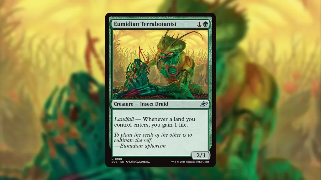 While Eumidan Terrabotanist is by no means the last Edge of Eternities spoiler to talk about, it does look rather promising. As an above-rate creature, it could see play in Standard ramp strategies. A 2/3 for two mana that gains life seems like an excellent speed bump against aggressive decks that could buy time for slower strategies.