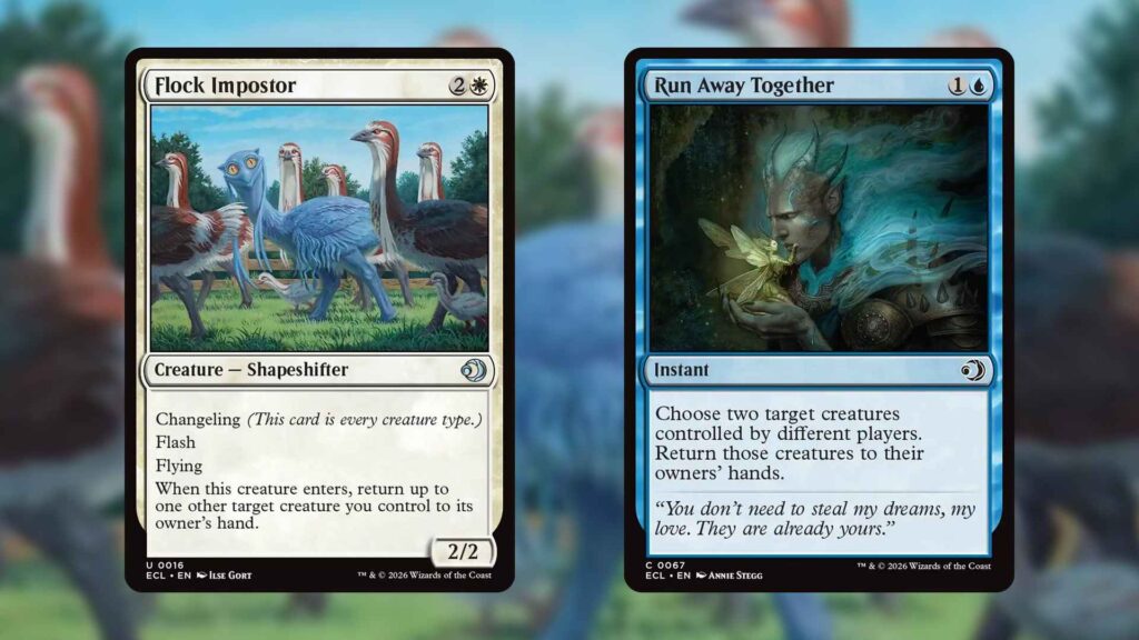 This means that cards like Run Away Together and Flock Impostor have lots of opportunities to two-for-one your opponent. You can save your own cards from removal, and recur their entry effect. Run Away Together and Dream Seizer can be particularly nasty, bouncing an opponent’s bomb and discarding it late in the game.